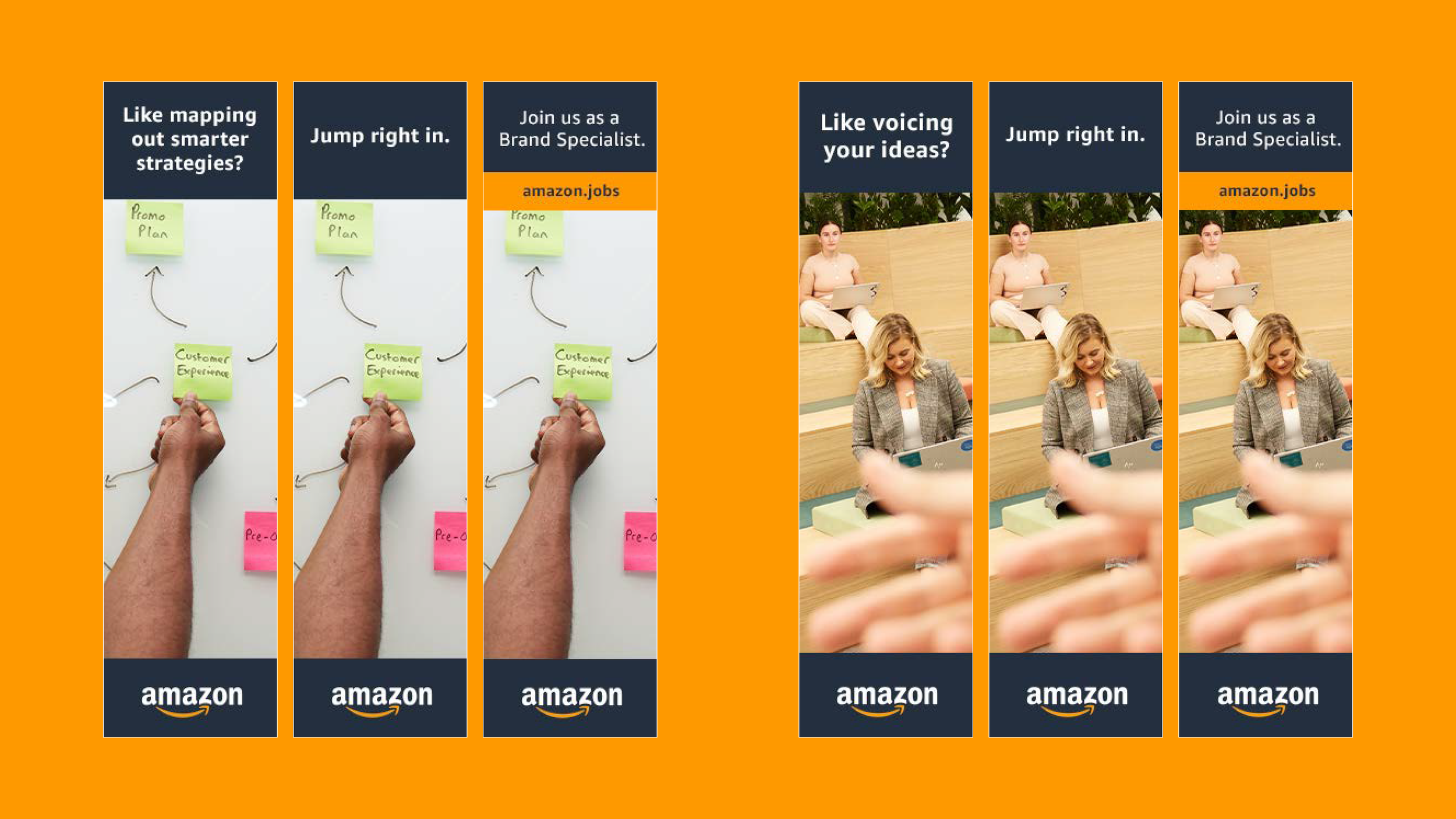 We started with in-depth research. We wanted to better understand the role and the messages that would resonate with Brand Specialists. It soon became clear that we should focus on the complexity of the role and its scope for impact. And get across the need for Brand Specialists to immerse themselves completely – in their clients, in the data, in the intricacies of the Amazon marketplace and the perspectives of everyone they work with.
